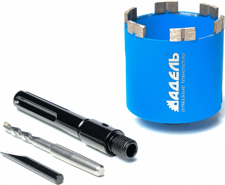 - Возможно использование с центровочным твердосплавным сверлом и различными переходниками (М16 – Шестигранник, М16 – SDS-Plus, М16 – SDS-Max)
