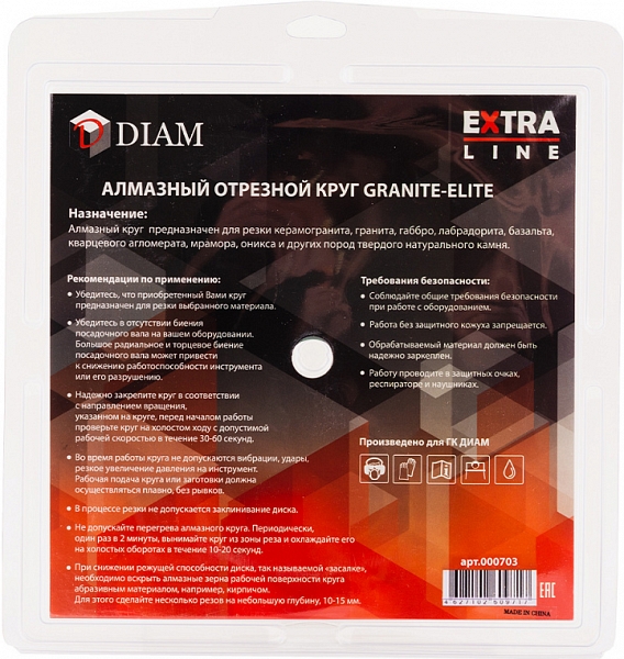 - Корейские технологии: изготовлен по технологиям и под контролем ведущих производителей алмазного инструмента Южной Кореи, специально по заказу ГК Диам