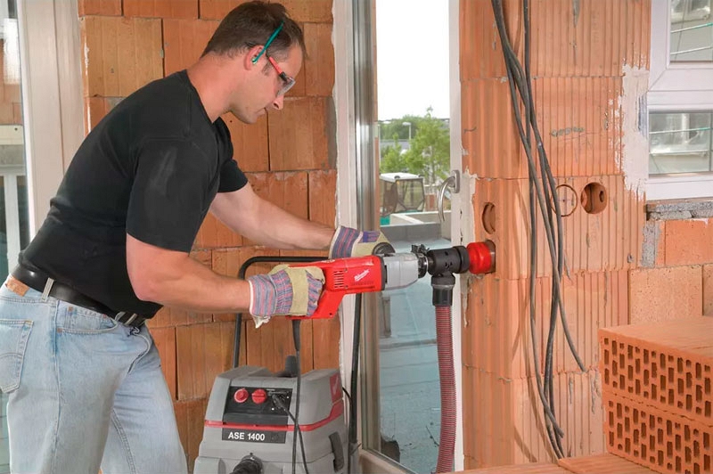 - Промышленный или строительный пылесос для удаления пыли при сверлении