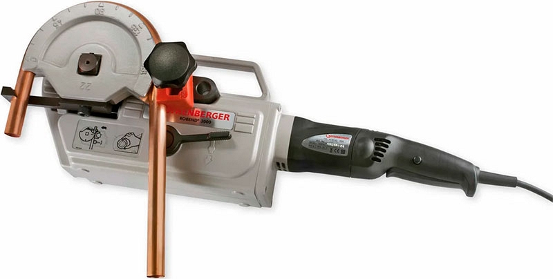 Модель снята с производства! Электрический трубогиб Rothenberger Robend 3000 Set 12-14-16-18-22 мм с треногой (Ротенбергер Робенд 3000 Сет 12-14-16-18-22 мм с треногой) – переносной надежный электротрубогиб для точной холодной гибки в ручном или автоматическом режиме на угол до 180° медных труб, медных труб в оболочке, алюминиевых труб, тонкостенных стальных труб, тонкостенных стальных труб в оболочке, черных и оцинкованных стальных труб, бесшовных стальных труб, многослойных труб Ø 12, 14, 16, 18, 22 мм. Применяется при монтаже водопроводов, систем отопления и кондиционирования, в холодильной технике и для серийных производств. Производитель: ROTHENBERGER (РОТЕНБЕРГЕР) – Германия.