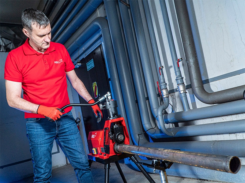 Гидравлический желобонакатчик Voll V-Groover 12 (Волл В-Грувер 12) – электрогидравлический желобонакатный станок для накатки желобков на стальных трубах Ø 2" – 12". Используется при монтаже без сварки трубопроводных систем водоснабжения, теплоснабжения, пожарной безопасности, промышленных систем.