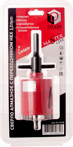 Цена и технические характеристики коронки по бетону для розеток с переходником M16/Hex 12 мм Diam Master Line 68 мм:
