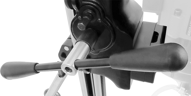 - Двухскоростной редуктор каретки: каретка имеет двухскоростной редуктор подачи алмазной коронки, что позволяет производить бурение разных материалов