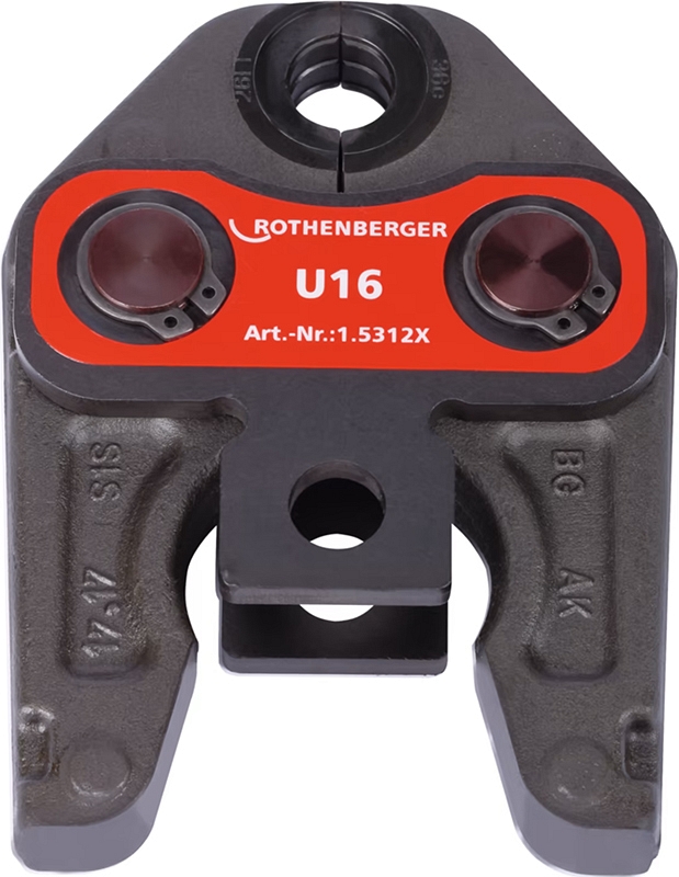 Пресс-клещи Rothenberger Standard U16 (Ротенбергер Стандарт У16) проверенного качества, ориентированные на пресс-фитинговые и трубные системы обжима пластиковых из сшитого полиэтилена (PE-X) и металлопластиковых (МПТ) труб Ø 16 мм различных производителей. Предназначены для аккумуляторных и электрических гидравлических радиальных прессов Rothenberger Romax 4000 / 3000 AC / AC Eco.