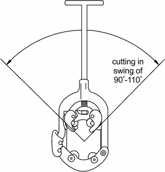 - Благодаря минимальному вращению, необходимому для резки труб (угол поворота 90° – 110°), идеально подходит для работы в труднодоступных местах и стесненных условиях