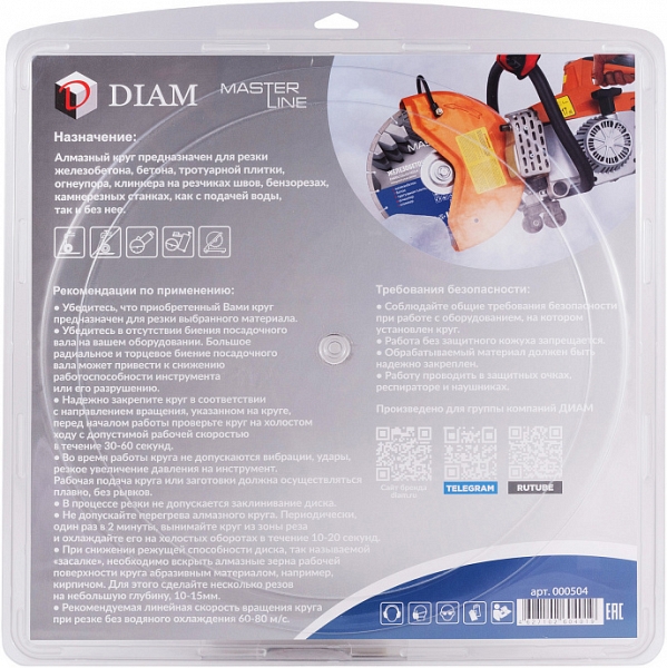 - Для бензорезов и электрических резчиков: подходит для использовании на ручных бензорезах и электрических резчиках (возможно потребуется установка через переходное кольцо, в комплект не входит)
