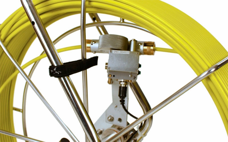 - Видеокабель Ø 9 мм (0,35") × 90 м на надежном барабане из нержавеющей стали с колесами