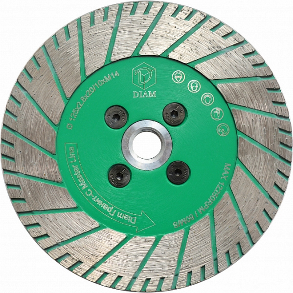 Специальный алмазный круг Diam Master Line Turbo Гранит-C 125 мм (Диам Мастер Лайн Турбо Гранит-C 125 мм) – специальный алмазный диск для сухой резки и подшлифовки гранитов различной твердости и других твердых материалов.